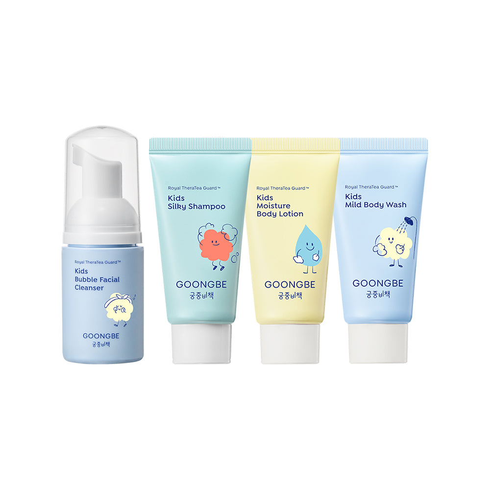 Goongbe - Kids Trial Kit includes four gentle, travel-sized essentials perfect for little ones on the go. Each product is formulated with plant-based ingredients to cleanse, hydrate, and protect sensitive skin without irritation—making it ideal for travel, gifting, or trying out Goongbe’s trusted care.