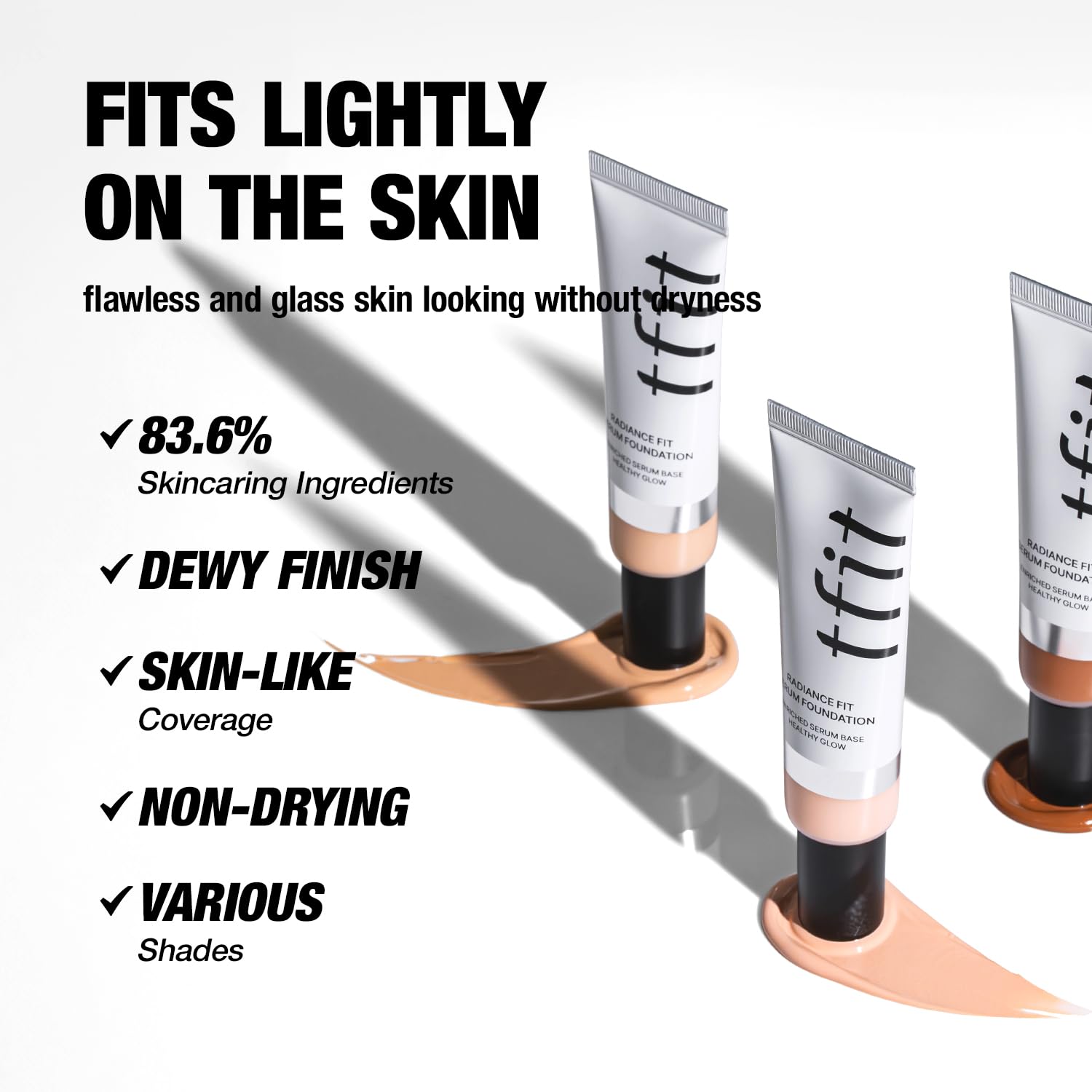 The tfit foundation with our high-radiance oil serum,Evens skin tone, lightweight foundation, blurs the appearance of dark circles and other less-than-perfect areas,Achieve a luminous, flawless matte foundation. Enjoy lasting brightness and that coveted glass skin look from morning till night